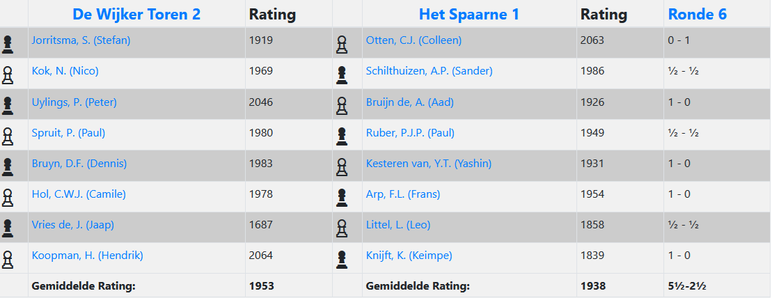 Yashin viel in voor Loek Veenendaal, die deze keer was verhinderd. Op bord 1 won Colleen Otten overtuigend. Ze draait goed op het hoogste bord dit seizoen. Jammer dat we van haar geen last hebben in de interne competitie….
