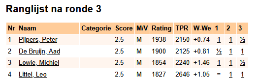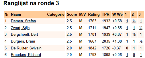 Mijn partij uit ronde 2. Na een overwinning in ronde 3 sta ik ook op 2½ punt.